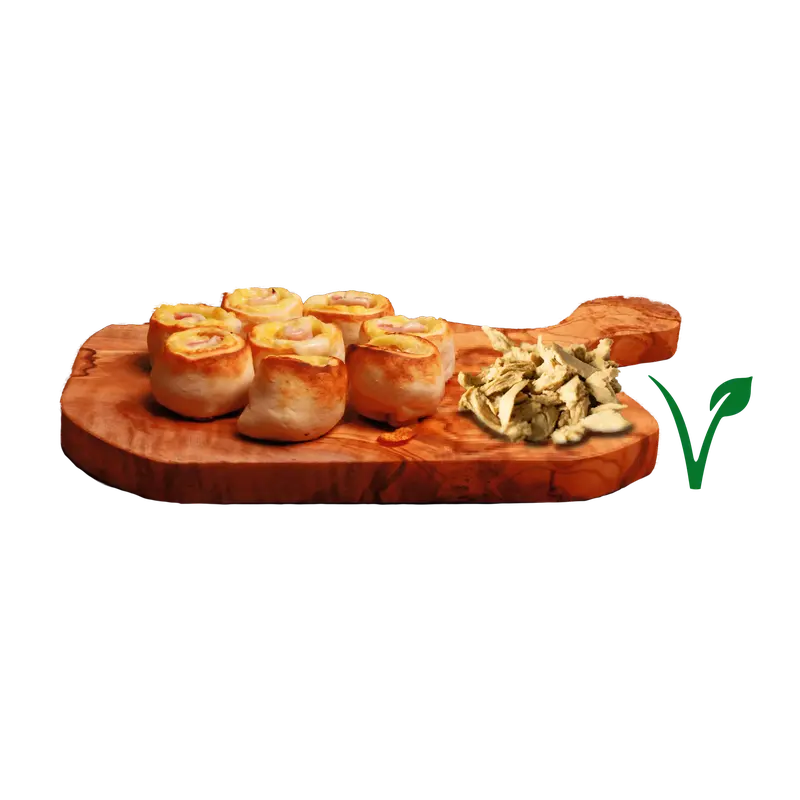 Pizzabrötchen mit Veganem Pizzaschmelz und Veganes Hähnchenfleisch